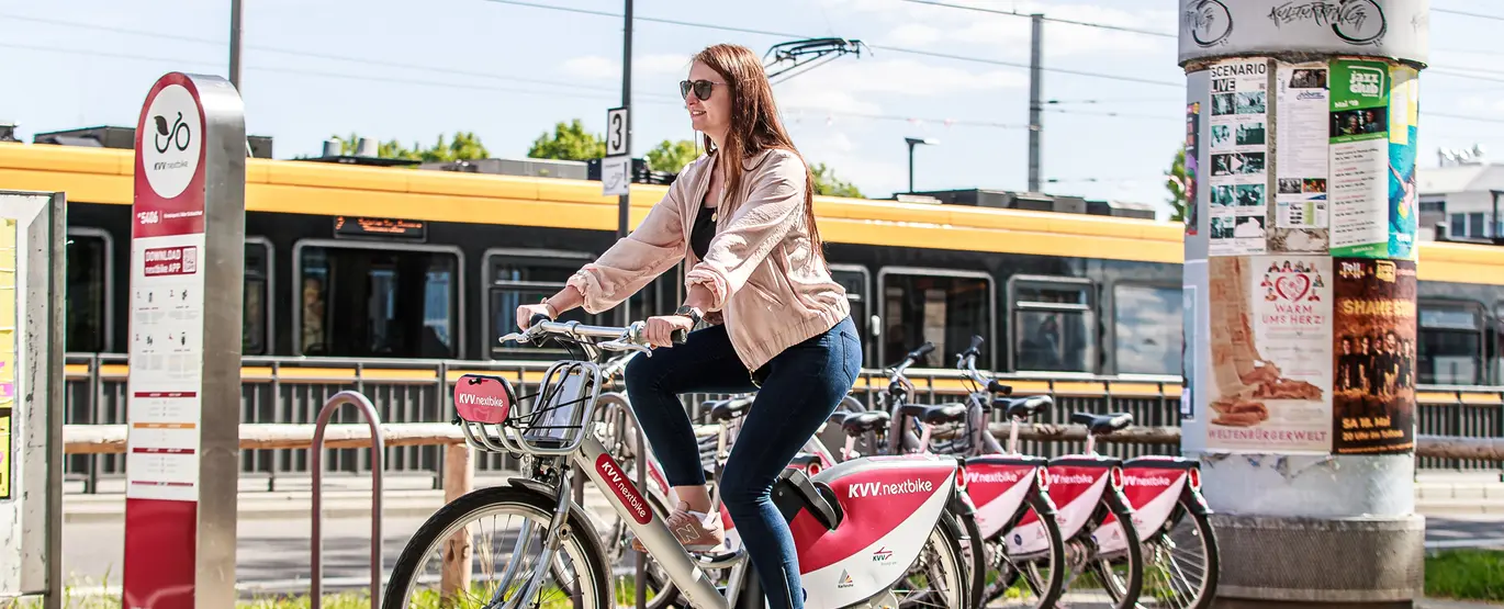 Mit über 950 Fahrrädern in sieben Städte macht das Fahrrad-Verleihsystem KVV.nextbike nachhaltige Mobilität für tausende Menschen täglich erlebbar.